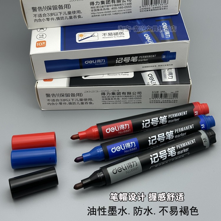 得力マーカー黒太頭ピンペンインク線筆マークペン速達マーカーペン油性マーカーペン