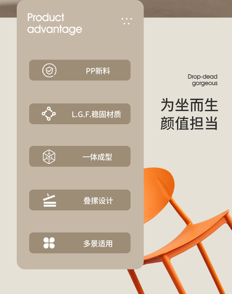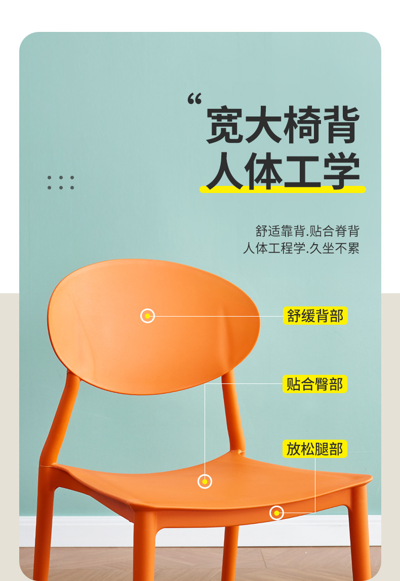 塑料家用加厚餐椅餐桌休闲吃饭椅子客厅简约叠放凳子靠背塑料椅子