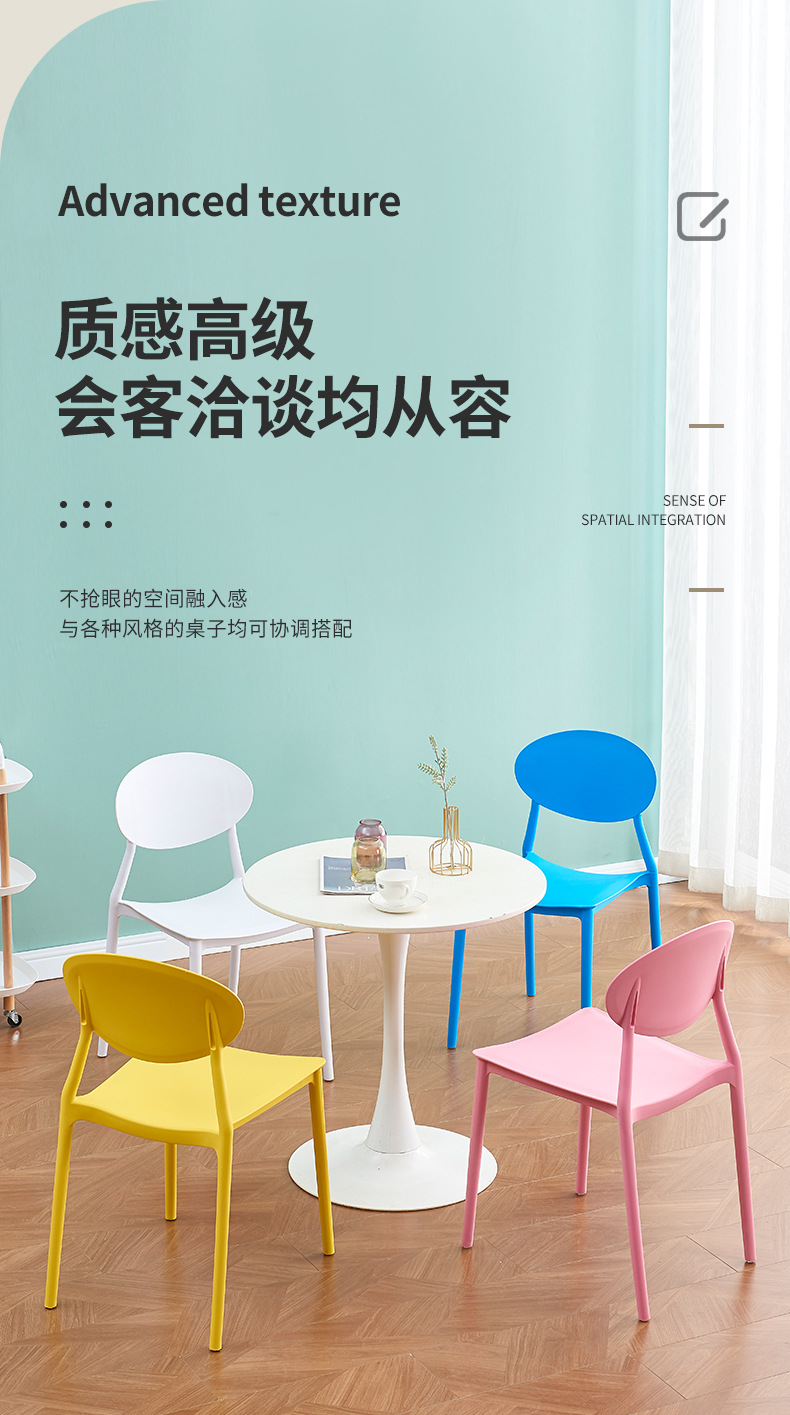 プラスチック製の椅子、厚手の家庭用ダイニングチェア、背もたれ付き椅子、ダイニングテーブルチェア、賃貸住宅用、レストランでの食事用スツール、モダンでシンプルなデザイン