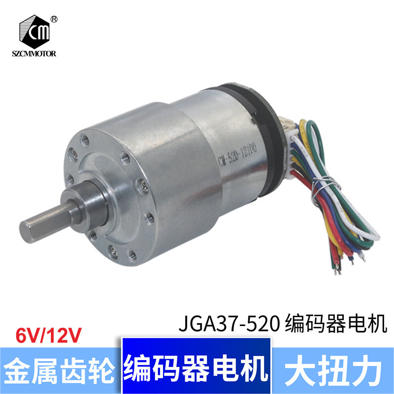 ホールエンコーダ付き直流減速モータ6v12v調速正逆転JGB37-520低速小型モータ