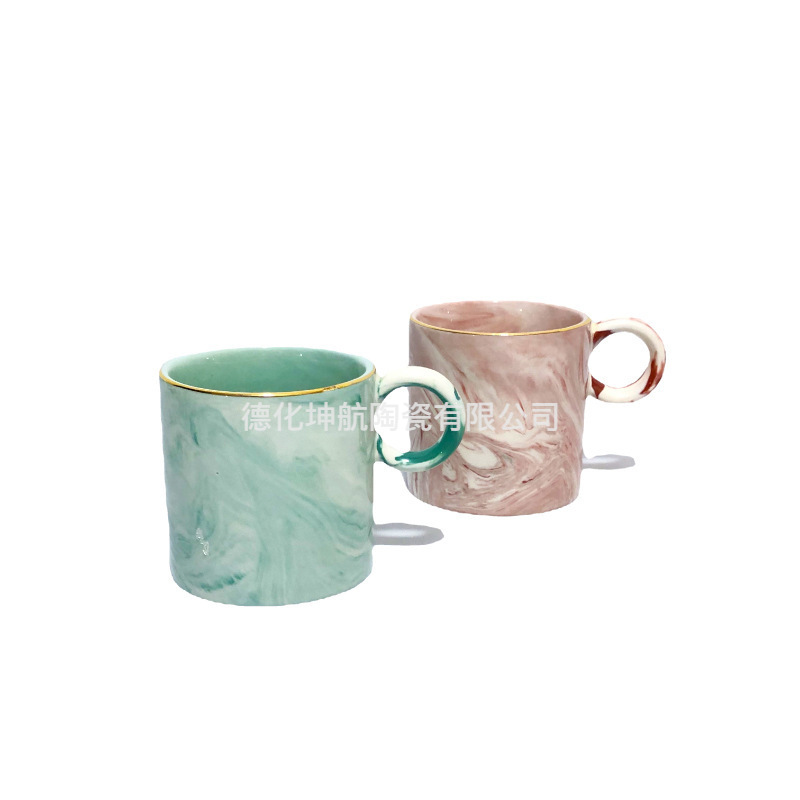 Ins陶磁器金辺コップ創意コーヒーカップ円形取っ手陶磁器カップ大理石紋家庭用シンプル