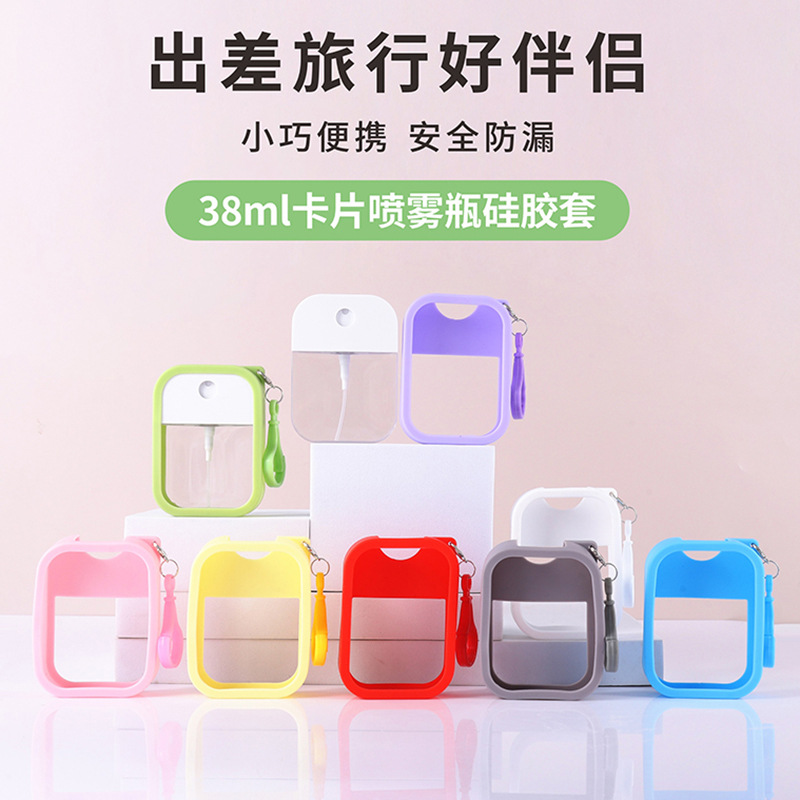 批发38ml卡片喷雾瓶带硅胶套卡喷便携分装喷雾瓶酒精消毒液喷雾瓶