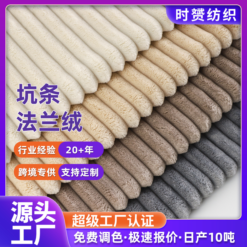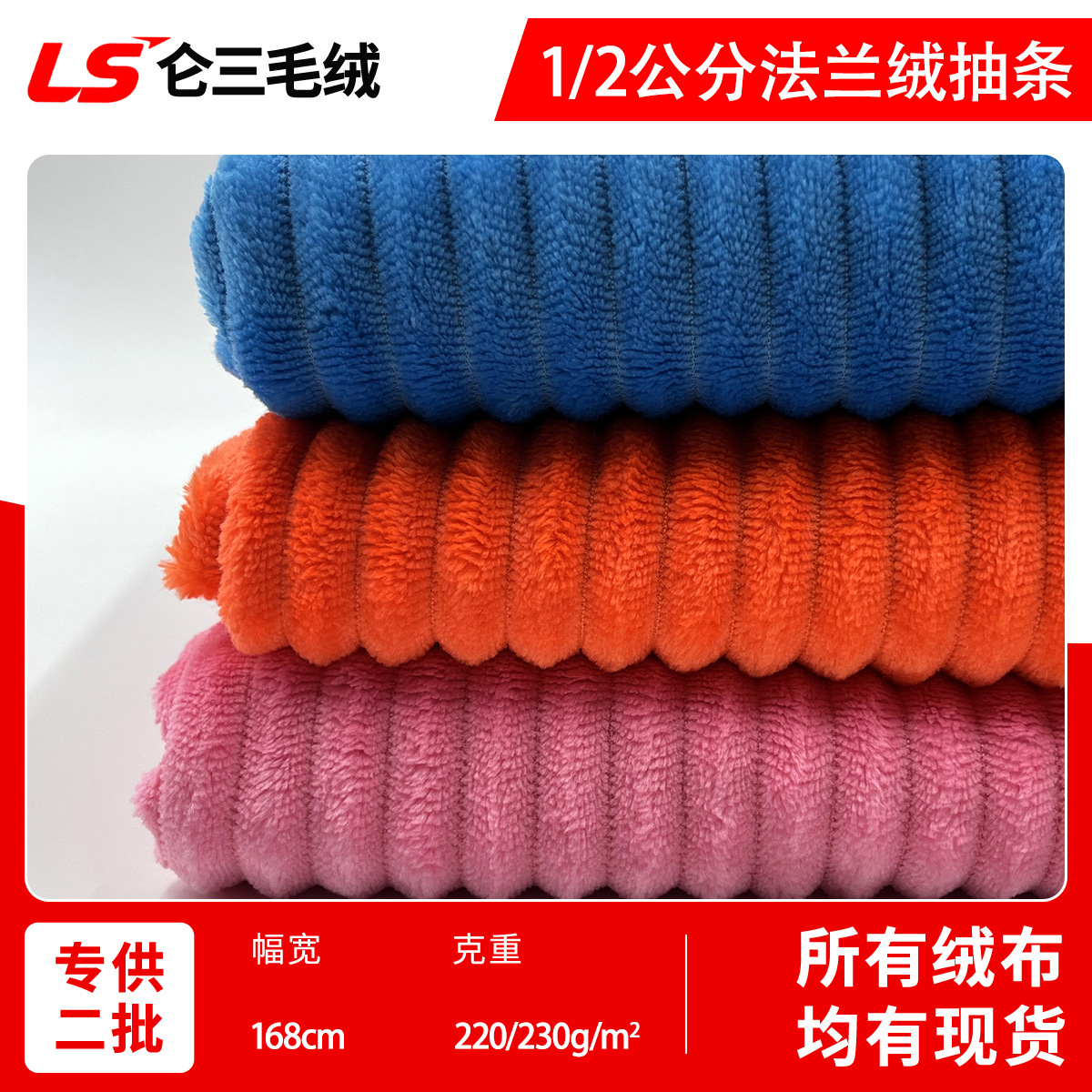 法兰绒抽条面料兔毛抱枕家居服沙发面料鞋帽箱包布料抽条法兰