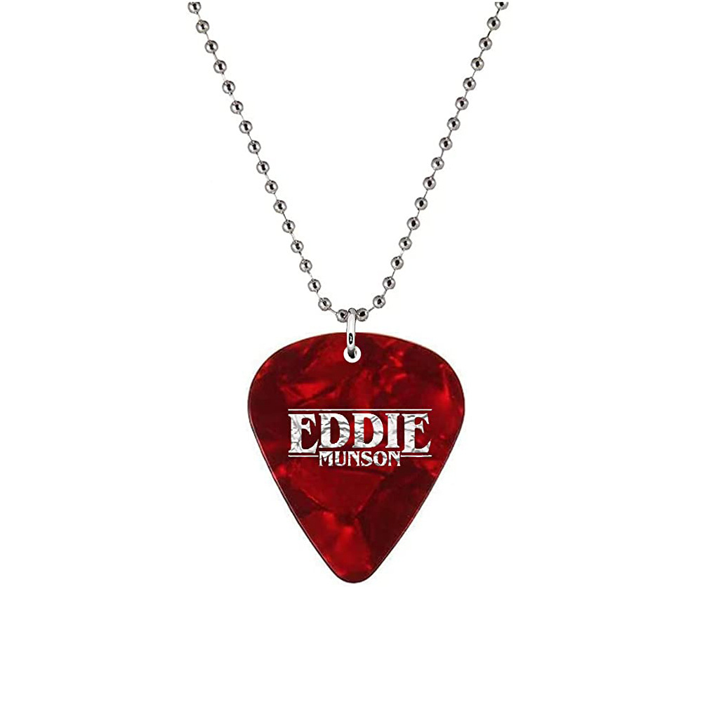 欧美影视周边怪奇物语心形EDDIE红色印花地狱火吉他拨片爱心项链