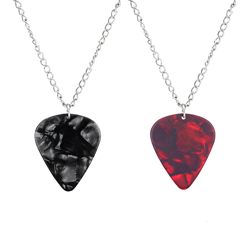 アマゾンクロスボーダー新作アクセサリーギターピック赤プリント地獄火ステンレスビーズチェーン瓜子バックルネックレス