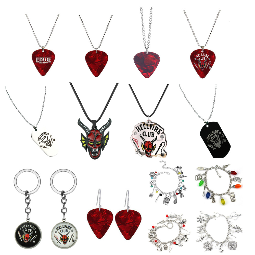 怪奇物語ギターピックネックレスstranger things 4地獄火クラブブローチキーホルダー