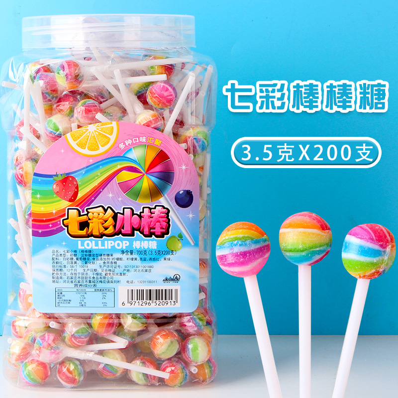 七彩小棒棒糖产品规格 1件=12瓶*200支*3.5g