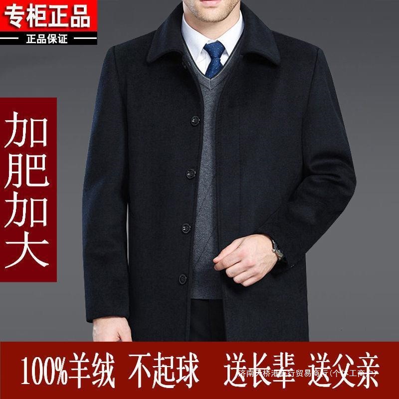 羊绒大衣男装中老年父亲装外套羊毛呢子加绒中长款加大码风衣