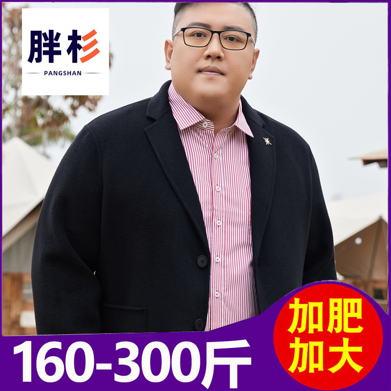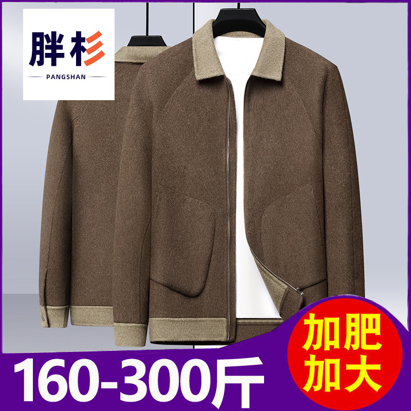 胖杉加肥加大码男装双面呢手工羊毛夹克宽松保暖外套胖子秋冬短款