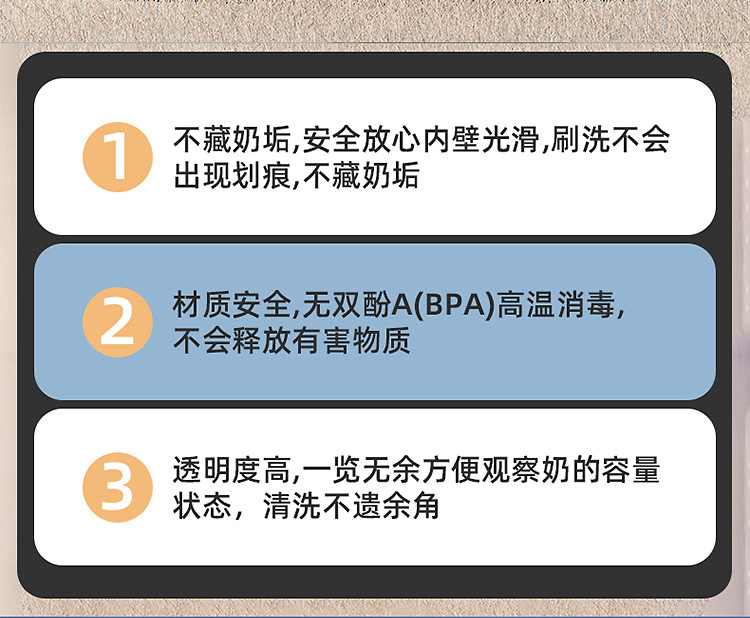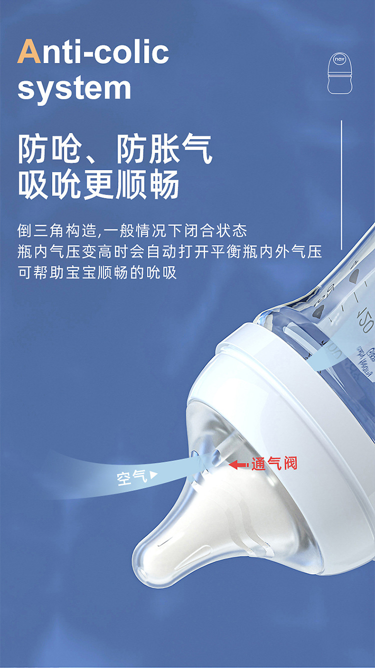 通用の広い口径の乳首は世喜赫根を配合して母乳をまねて膨張を防ぎます。