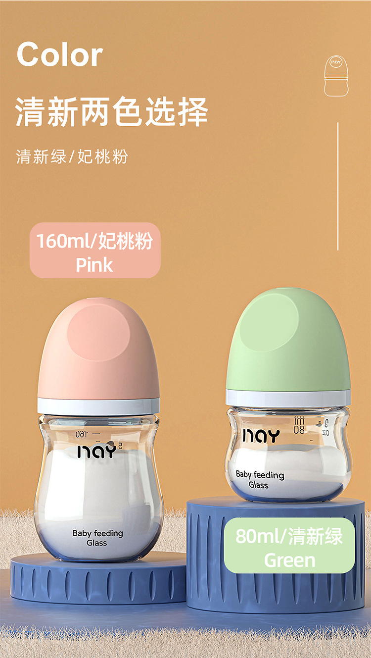 彩色漫画赤ちゃん赤ちゃんむせ防止ガラス哺乳瓶新生児適用160ml 240ml 0-3ヶ月哺乳瓶