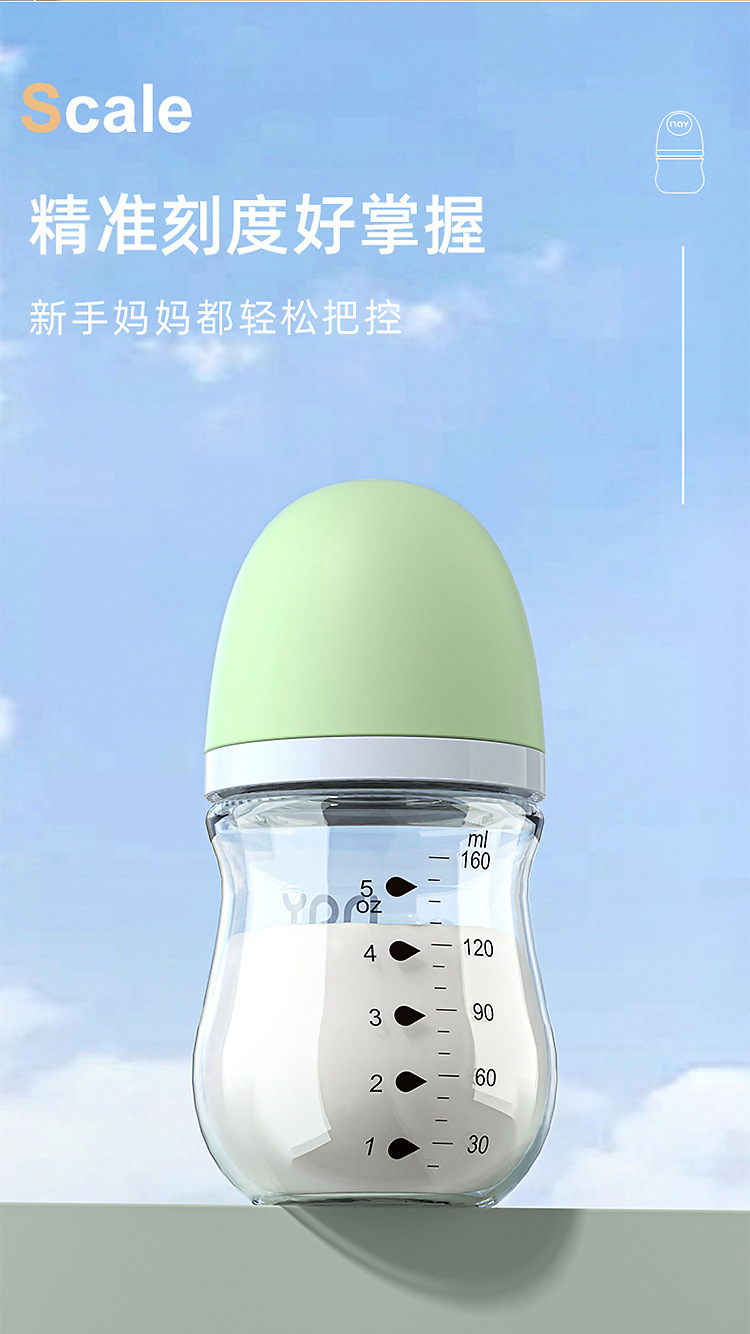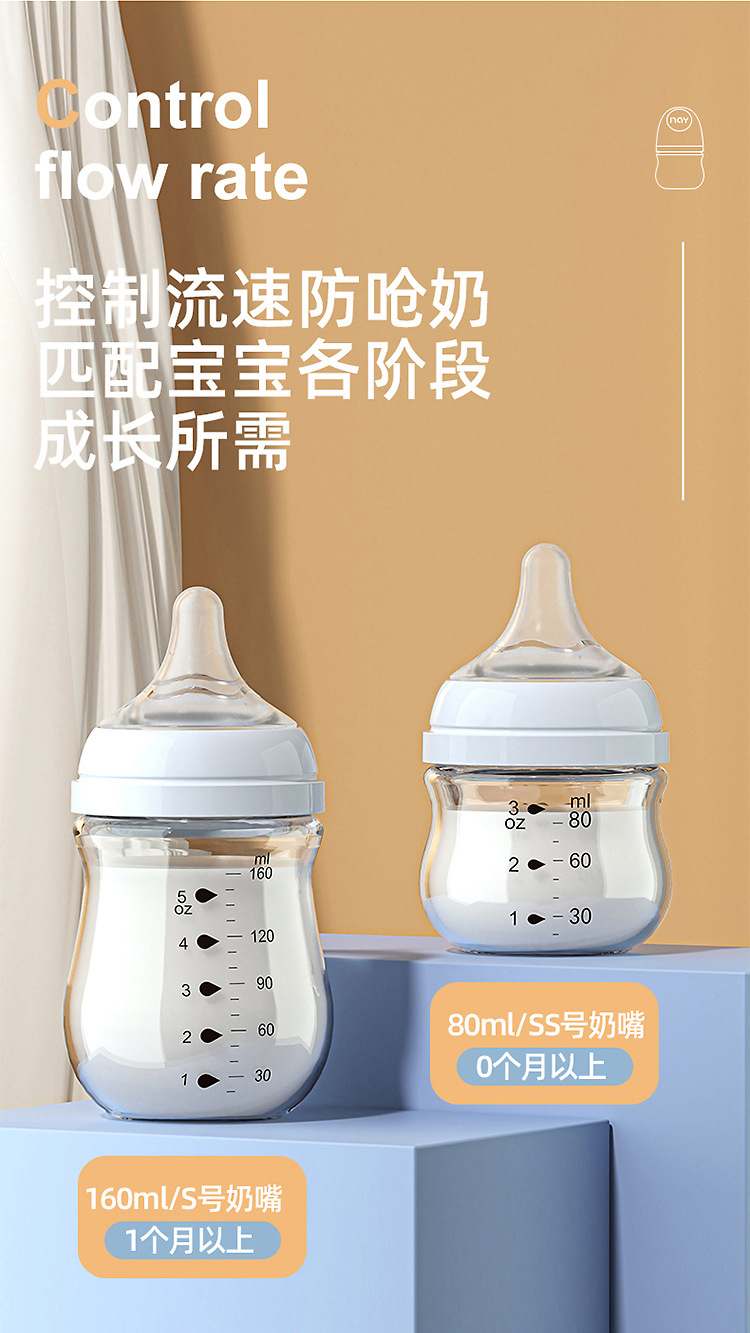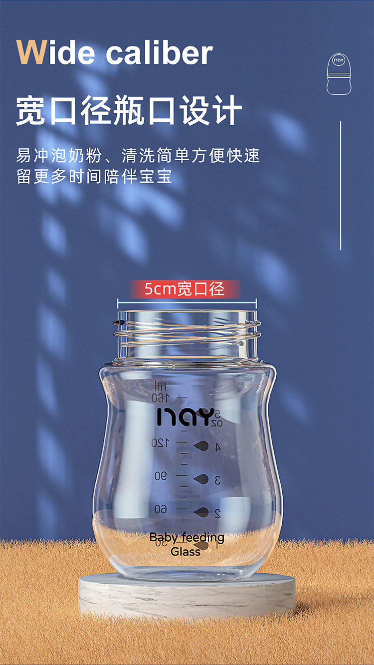 PPSU底部回気ベイン愛5cm広口新生児哺乳瓶赤ちゃんの膨張防止0-6ヶ月160ml