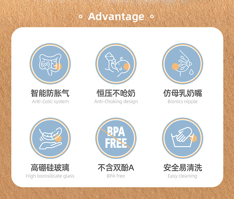 諾愛は新生児の中でホウケイ酸ガラスの哺乳瓶の赤ちゃんの広い口径の哺乳瓶の膨張を防止します。