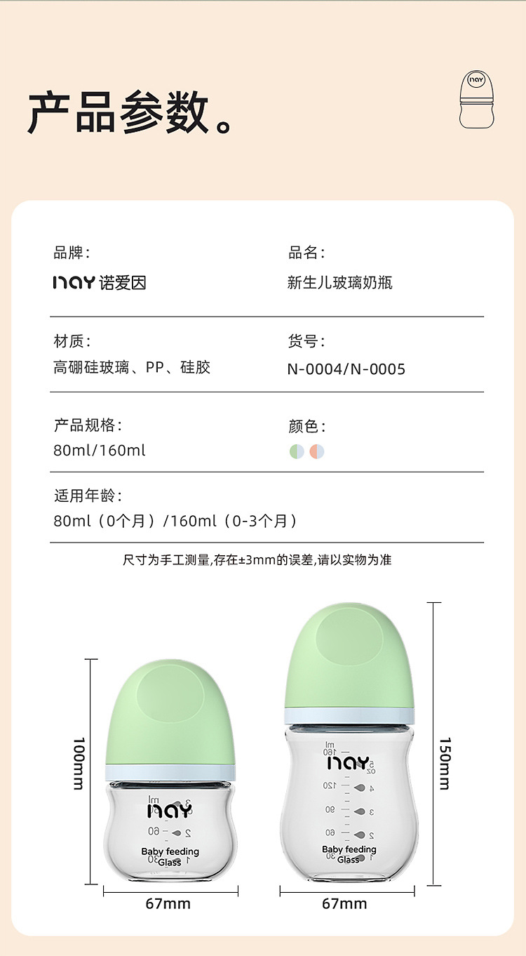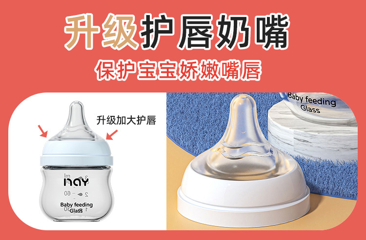 欧貝尼150ML新生児ガラス哺乳瓶の広い口径のむせ防止膨張防止赤ちゃん哺乳瓶の赤ちゃん0-6ヶ月