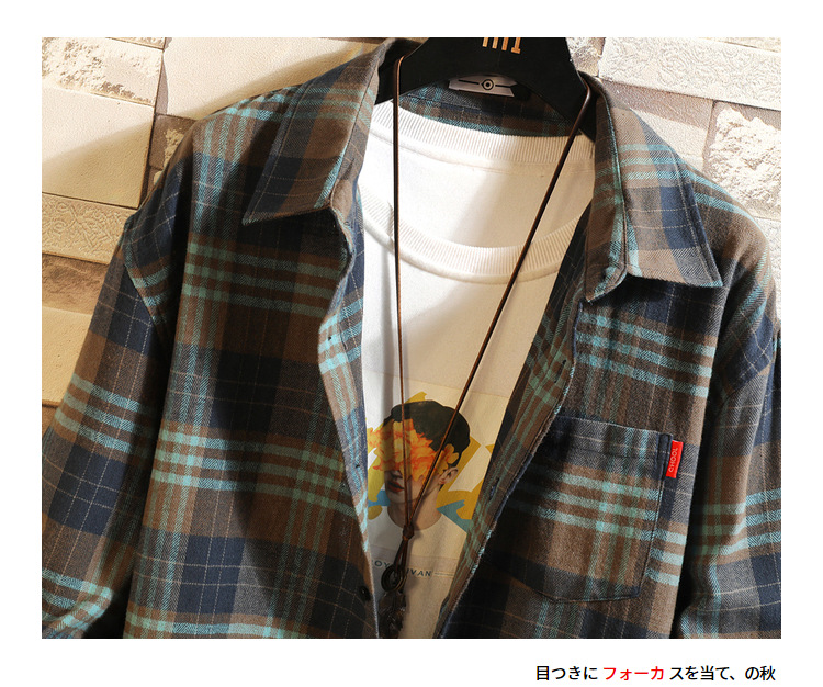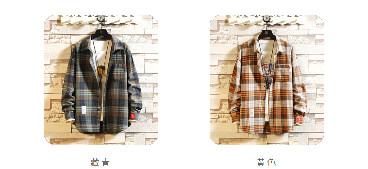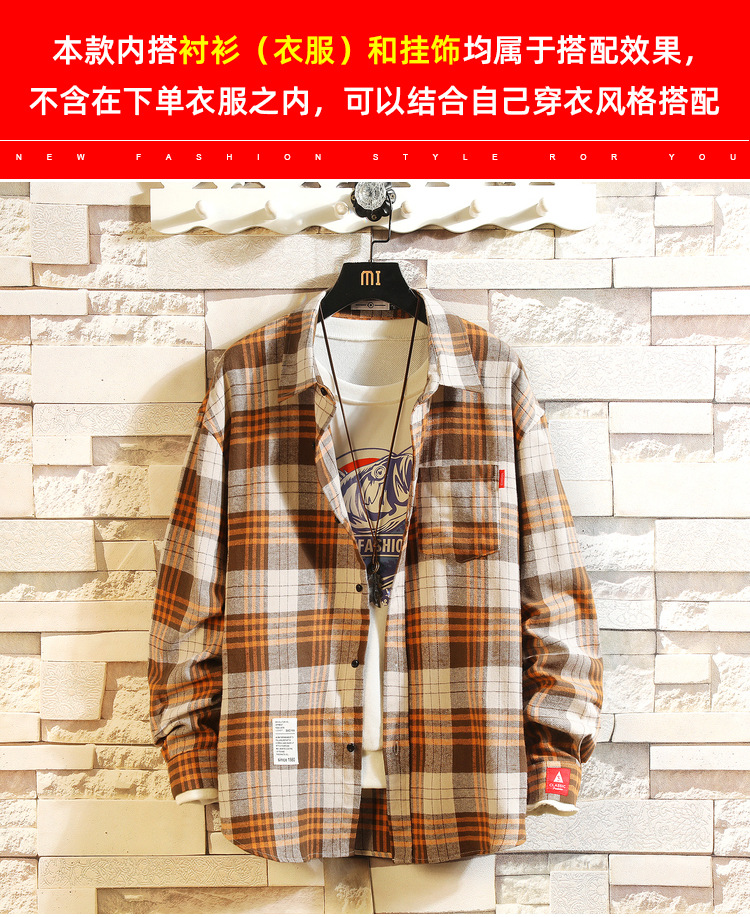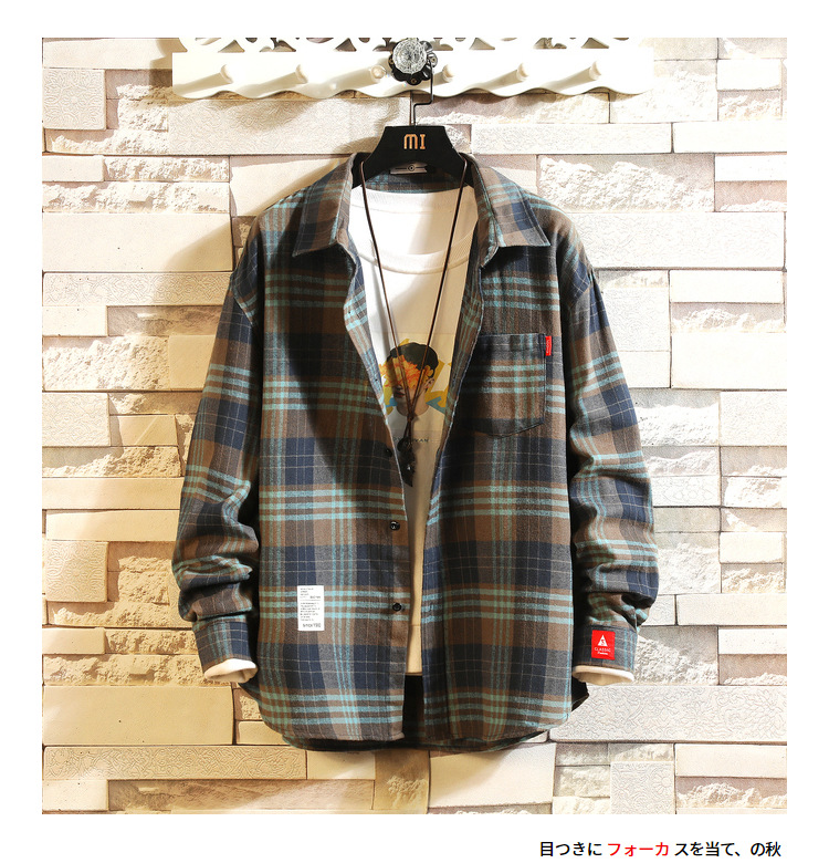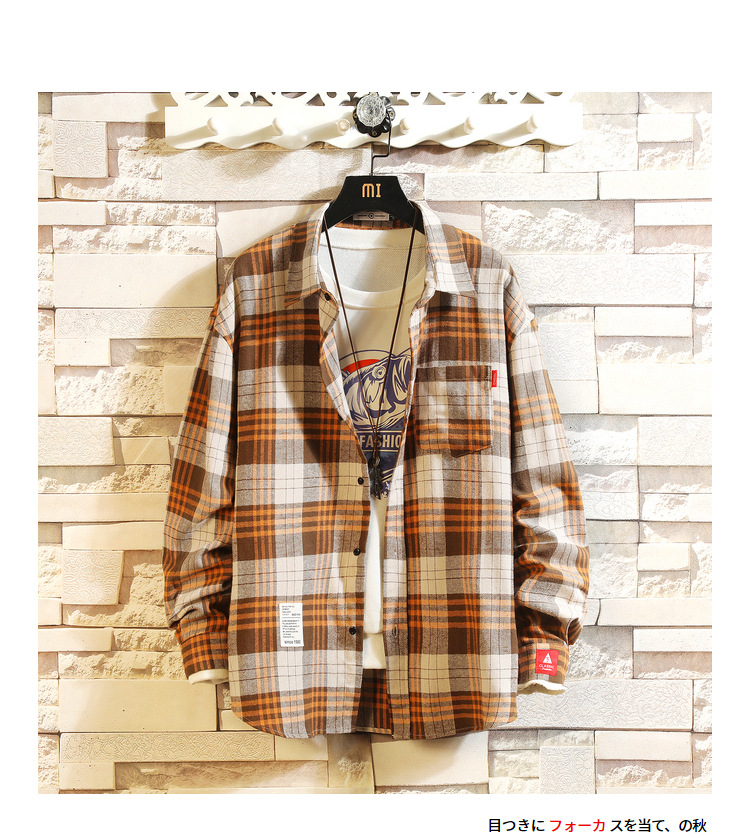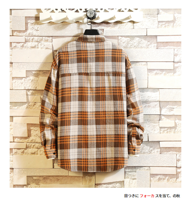2022秋の新型男性長袖シャツのファッション格子の大きいサイズのラベルを貼ってゆったりとしたカジュアルな学生シャツを飾ります。