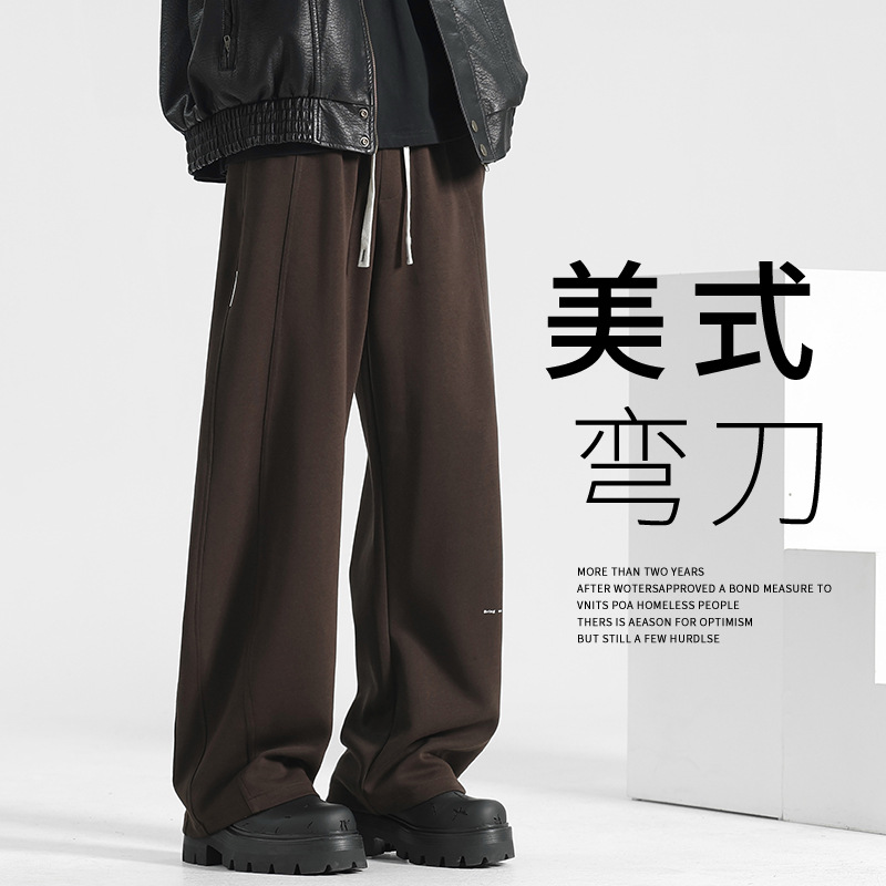 冬用ゆったりシミターパンツ メンズ 秋冬 ワイドレッグスウェットパンツ 裏起毛 カジュアルパンツ ストレートパンツ メンズパンツ