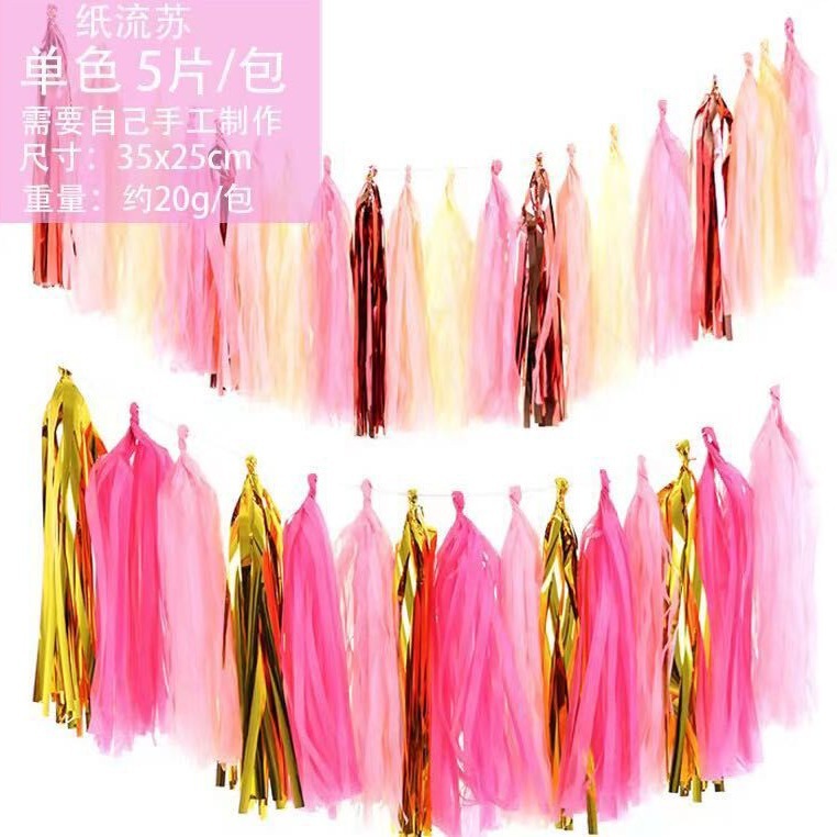 Ins風紙流蘇カラーリボン引き花PETアルミ箔流蘇誕生日パーティー結婚式バレンタインデークリスマスパーティー装飾