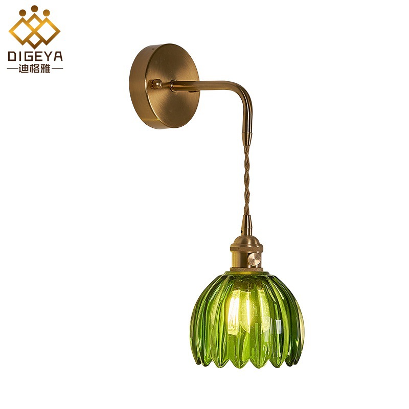 复古手工日式玻璃壁灯北欧民宿卧室床头灯ins风走廊过道复古壁灯,设计简约风格清新雅致,玻璃灯罩亮灯后朦胧美非常有高级感,国标H65黄铜材质灯头赋予这款灯更精致的语言,富有艺术感,尊重品质和艺术也是一种生活态度,让您的卧室拥有一片光影温馨。欢迎您订购