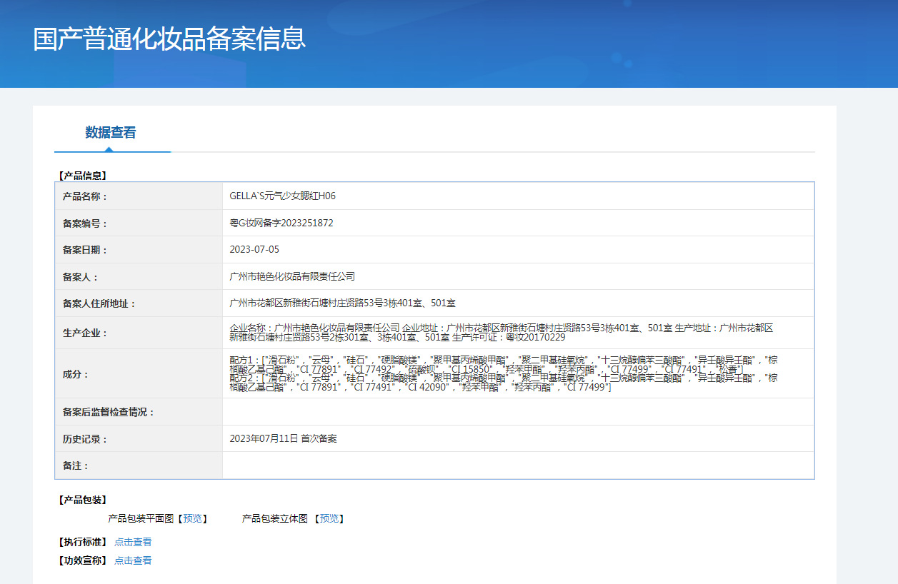 非特殊化粧品登録証番号 広東Gメイクアップネットワーク準備番号 2023251867
