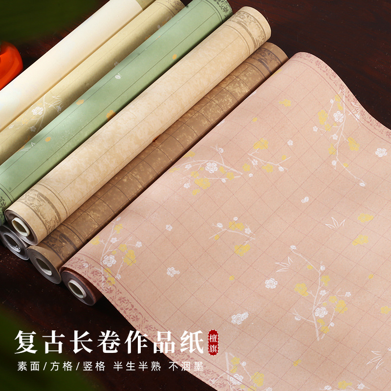 蜡染方格宣纸长卷毛笔小楷书法长卷专用作品纸状元笺2cm竖格半生