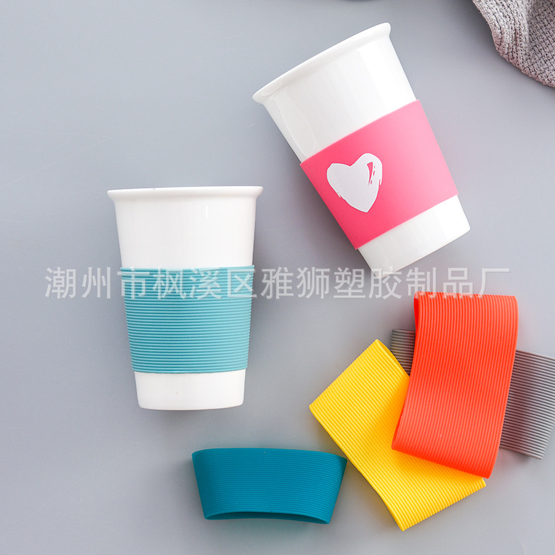 シリコンカップカバーマグカップセットコーヒーカップセットストライプ滑り止め断熱カバーセラミック保温カップセットシリコン保護カバー