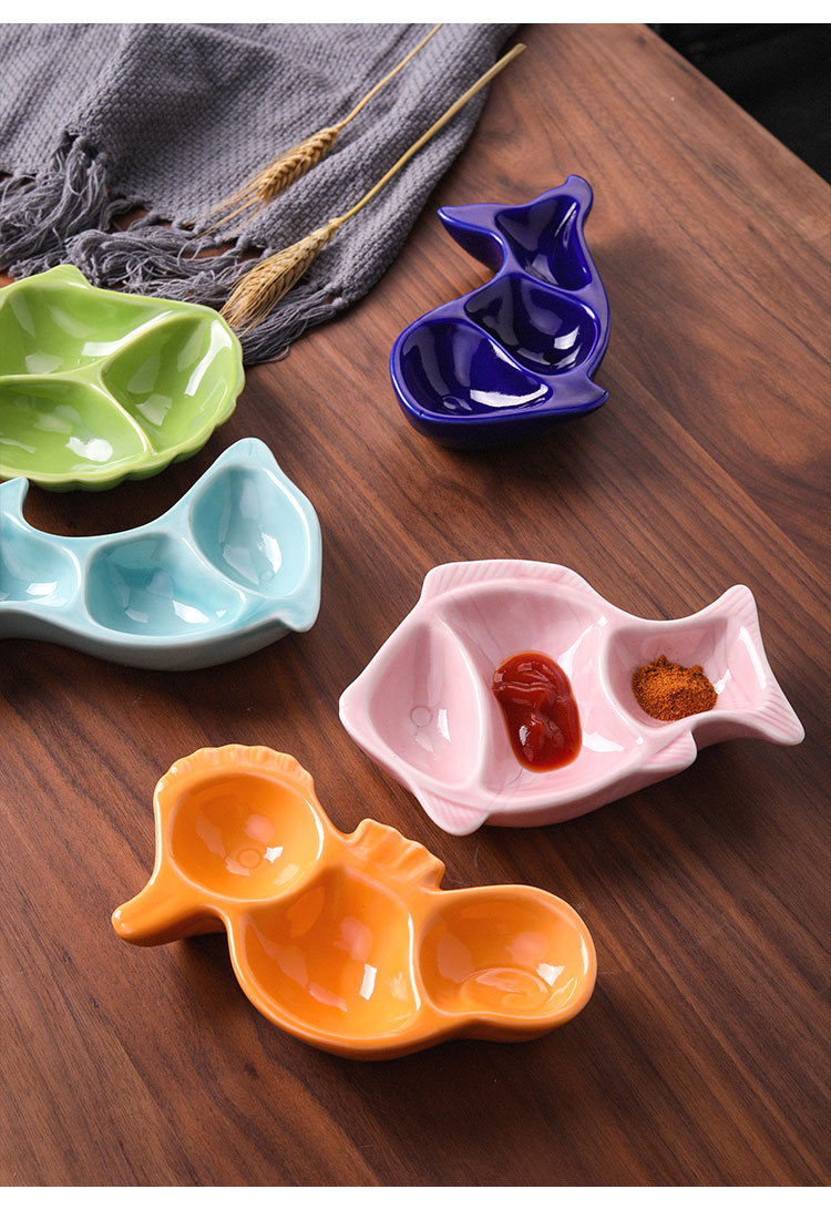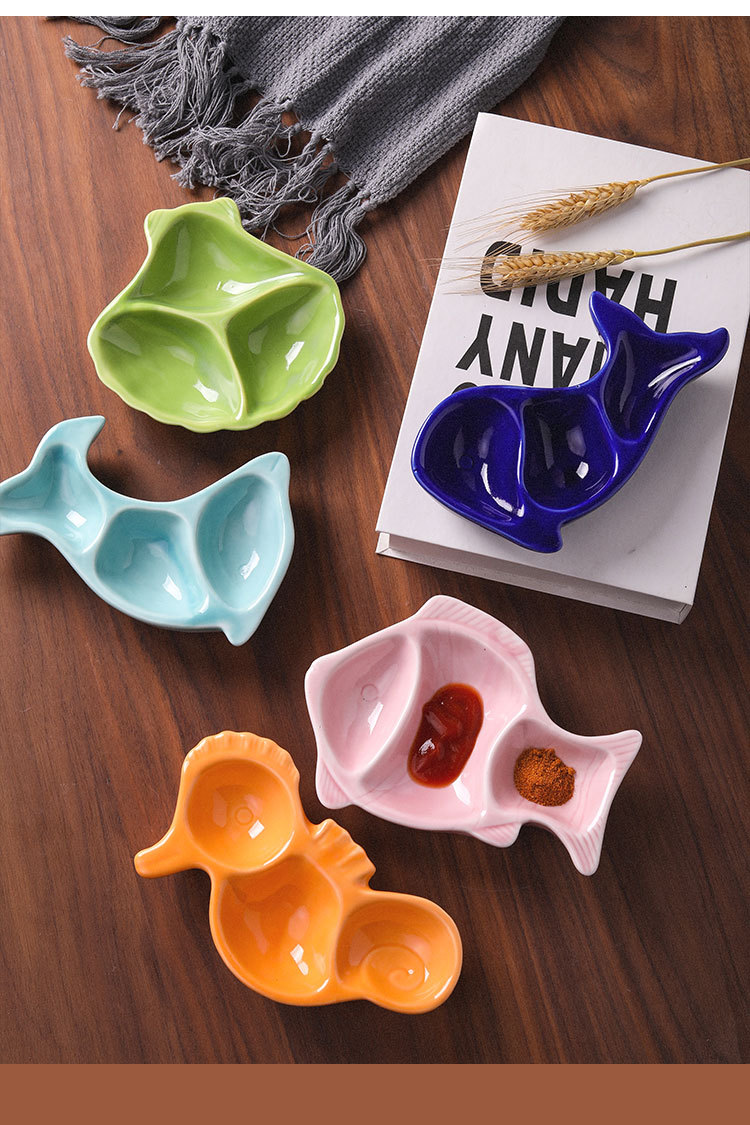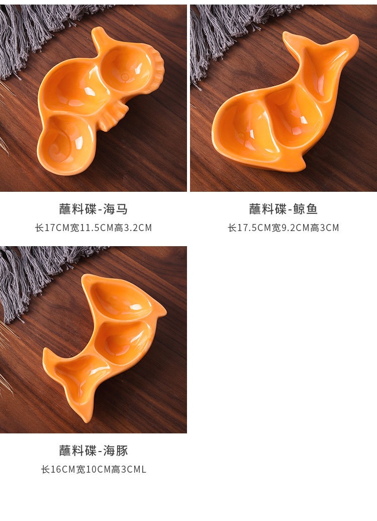 アニメクジラ創意陶磁ソース皿韓国風調味料皿焼きつけ皿三格鍋皿日本式食器