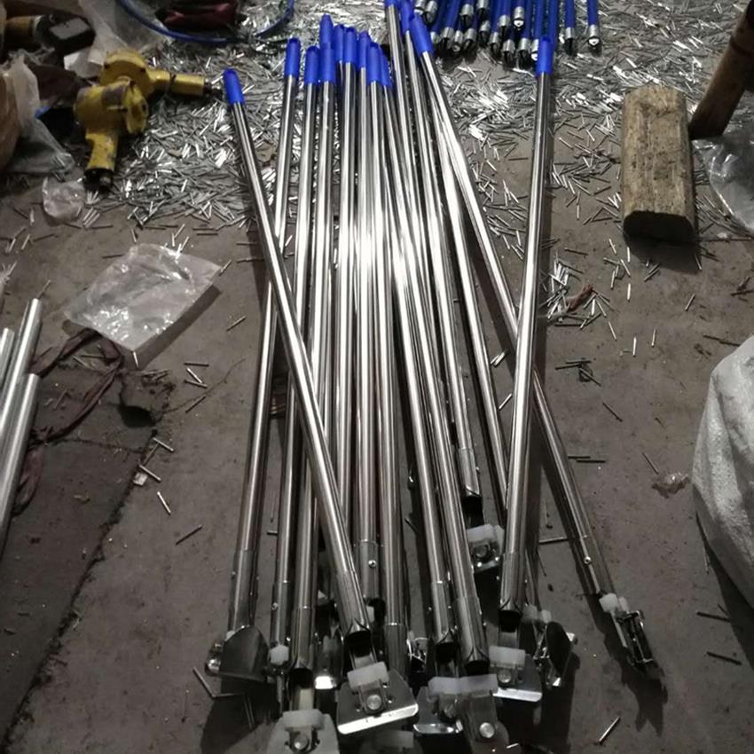 モップの棒を太くして、ステンレスのほこりを押します。