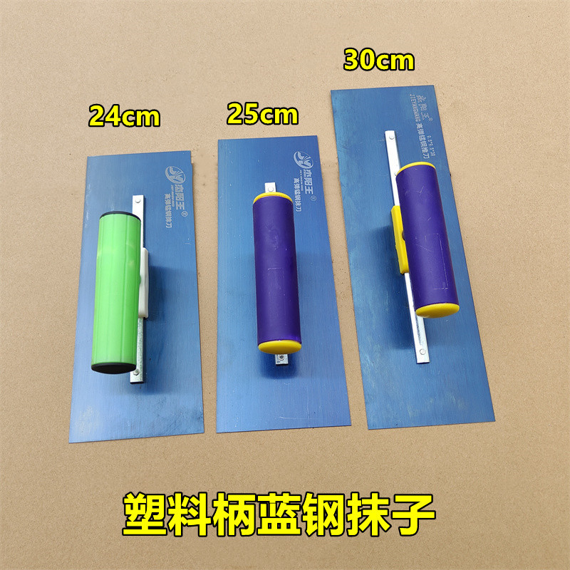 青いプラスチックの柄のパテの刀は木の柄のシャベルの刀の鏡面の灰色の実力の青い柄の抹子の灰色の刀を決裁して厚くなります。