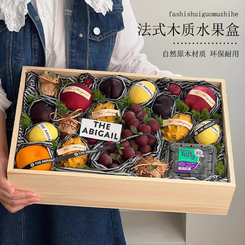 法式木质水果礼盒通用网红ins风鲜花礼物盒礼品盒空盒子定 制