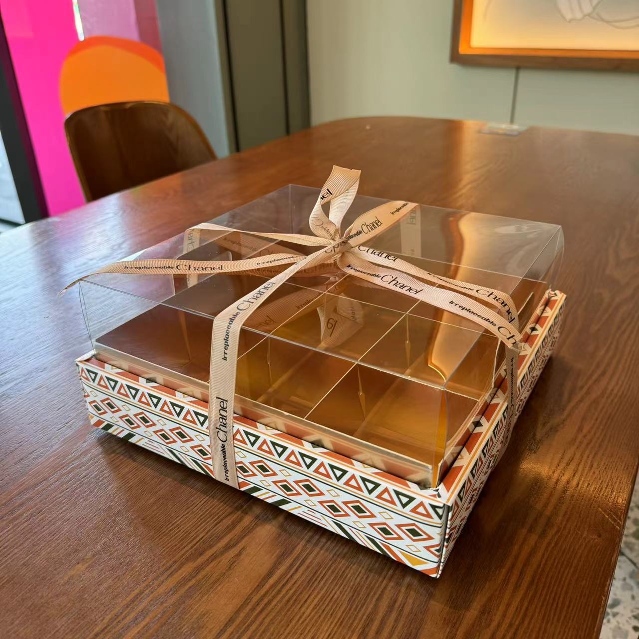 アトレス柄プラスゴールドカード9宮格手提げギフトボックス透明デザートのお茶の包装箱