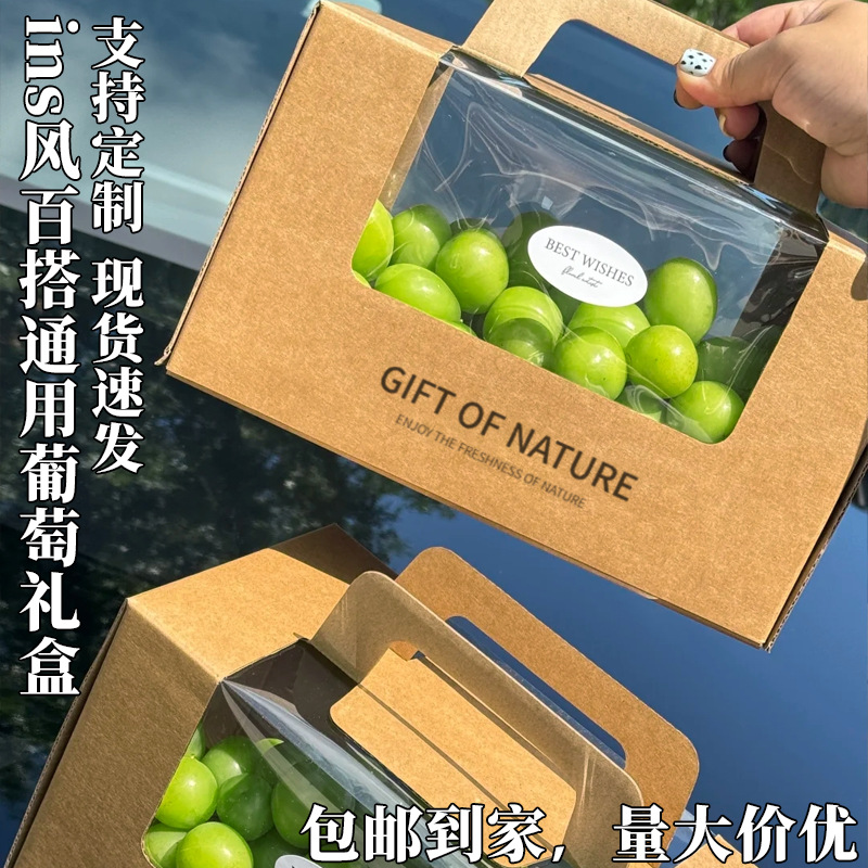 阳光玫瑰礼盒一串装透明窗牛皮纸包装盒空盒子晴王葡萄通用礼品盒