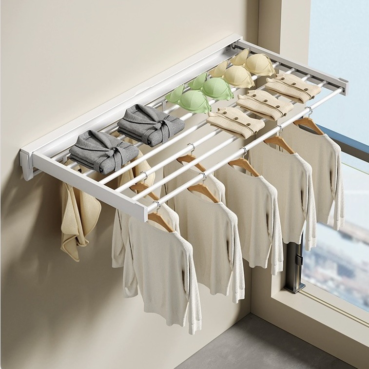 パンチングなしの目に見えない格納式物干し屋内バルコニー鋼線吊りロープ寮のバスルーム格納式物干しラック