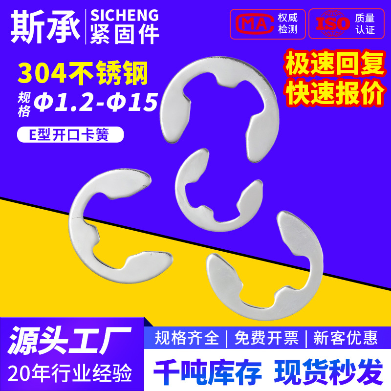 304ステンレス製のオープンストップリングカードスプリングE型ストップリングE型軸バックルM1.2-M12 GB896