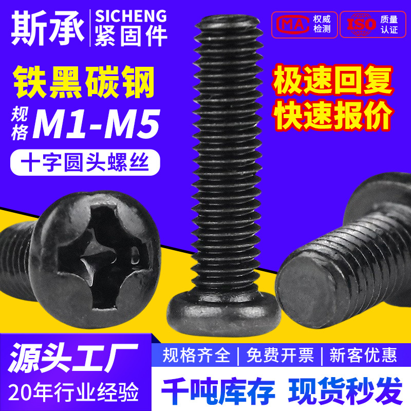 黒色KM十字穴付き皿頭小ネジ、平頭皿頭電子機器用小ネジ、M1.4-M6、メーカー卸売ネジ