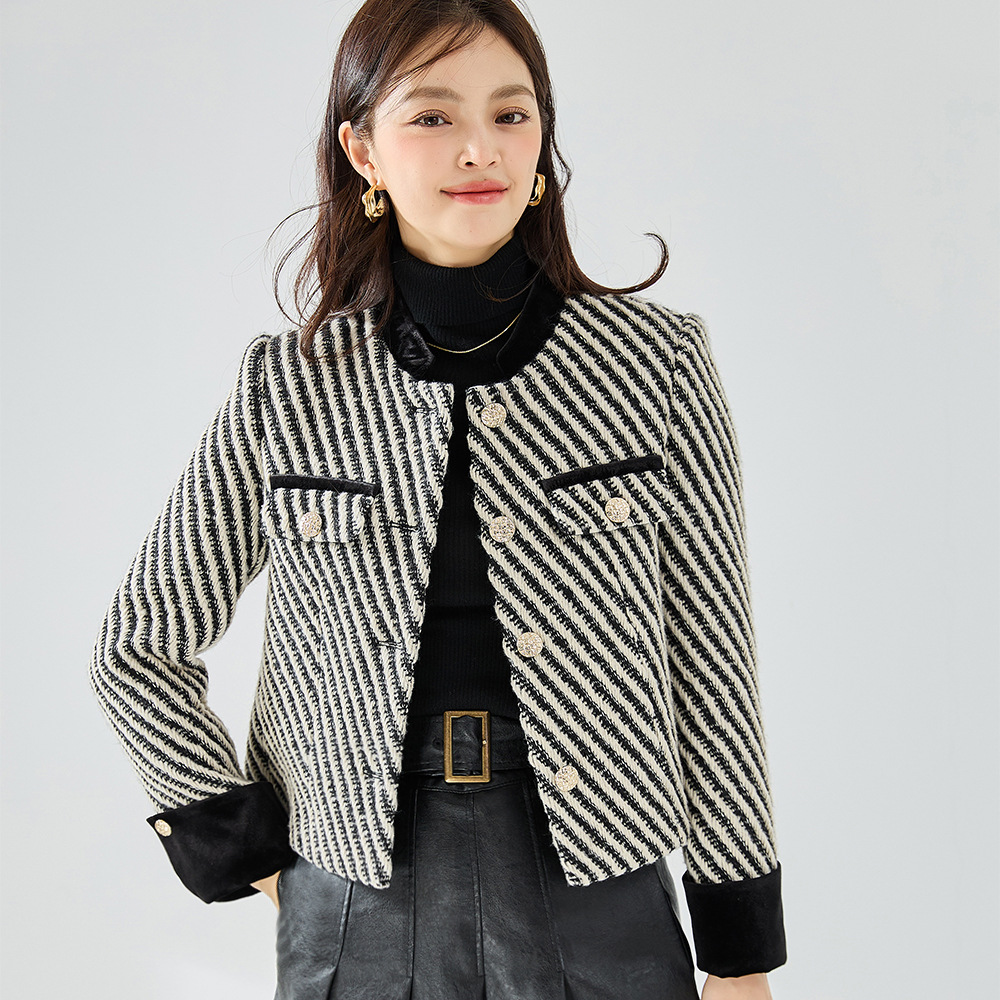 面料含有32%的羊毛,Tian然材料自然亲肤。软硬适中,具有挺括性,衣服更加工整具有gao级感。