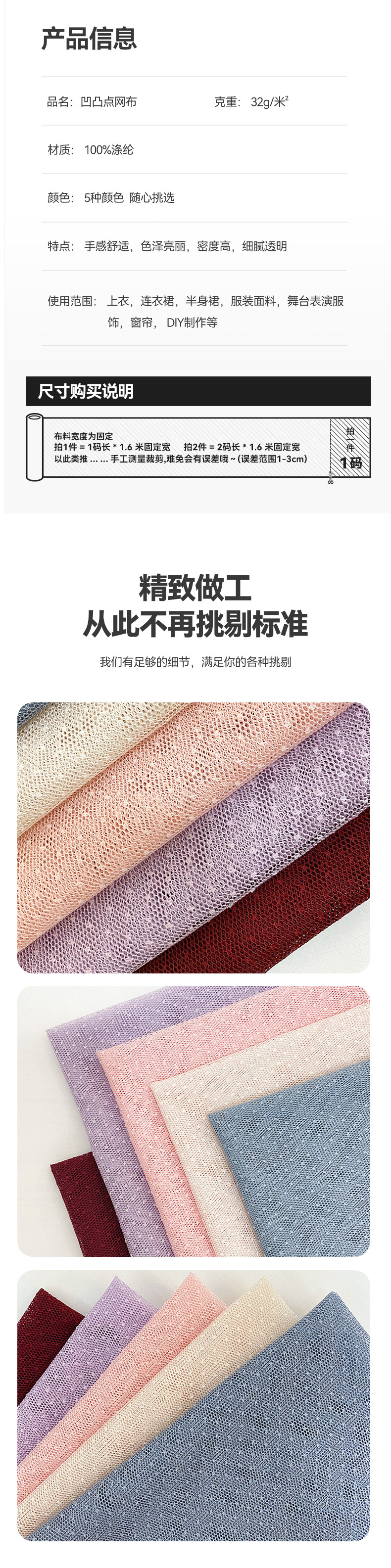 六角メッシュ布品質凹凸感ポリエステル点メッシュ生地点波点帽子服装バッグ薄紗