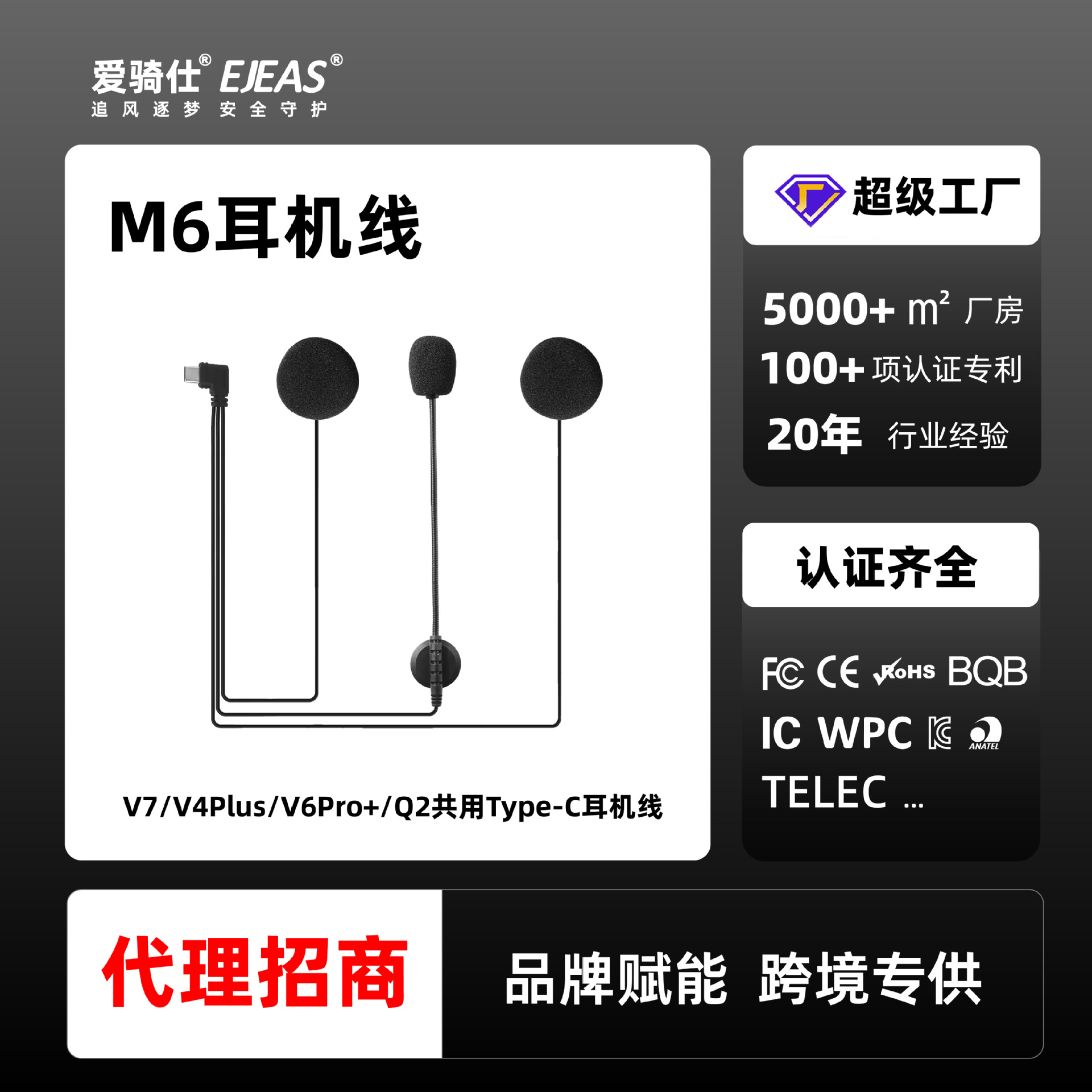 EJEASメーカーQ8ヘルメットインターホン専用16pinType-cヘッドフォンアクセサリー