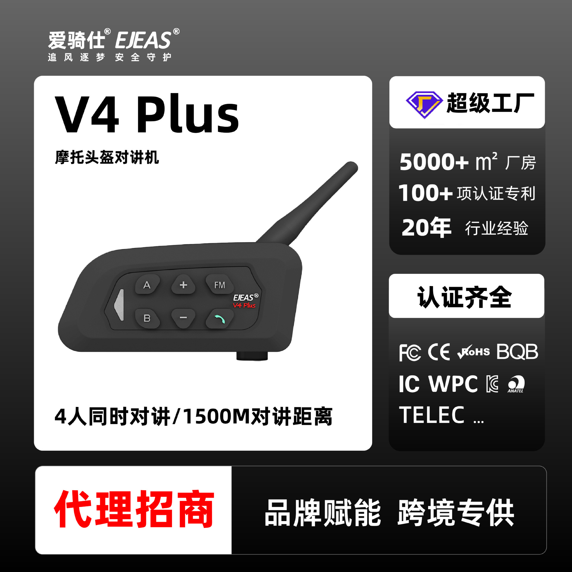 EJEASオートバイヘルメットbluetoothインターホンダブルチップ4人同時インターホンヘッドホンV4plus工場直販