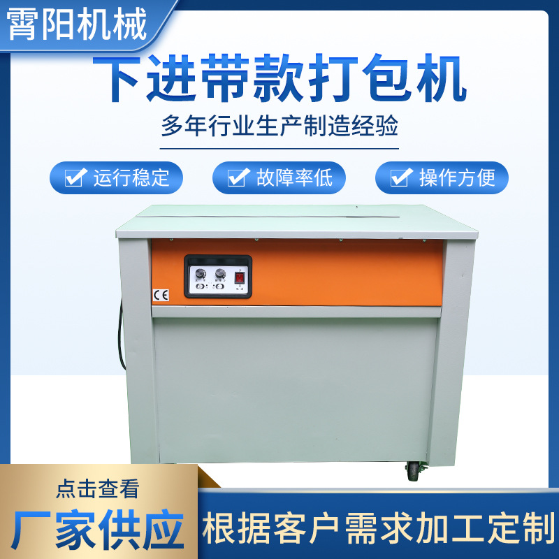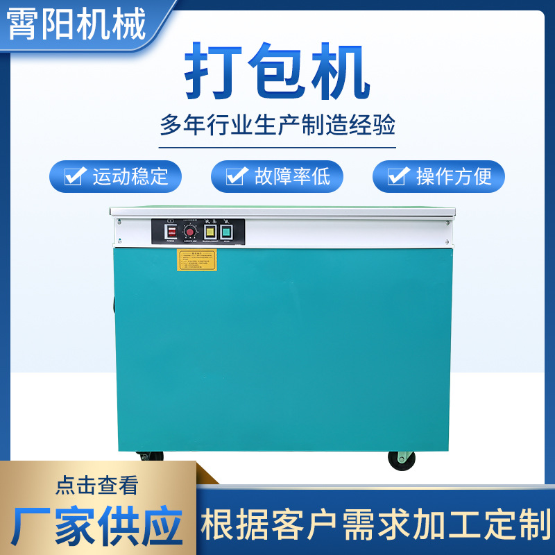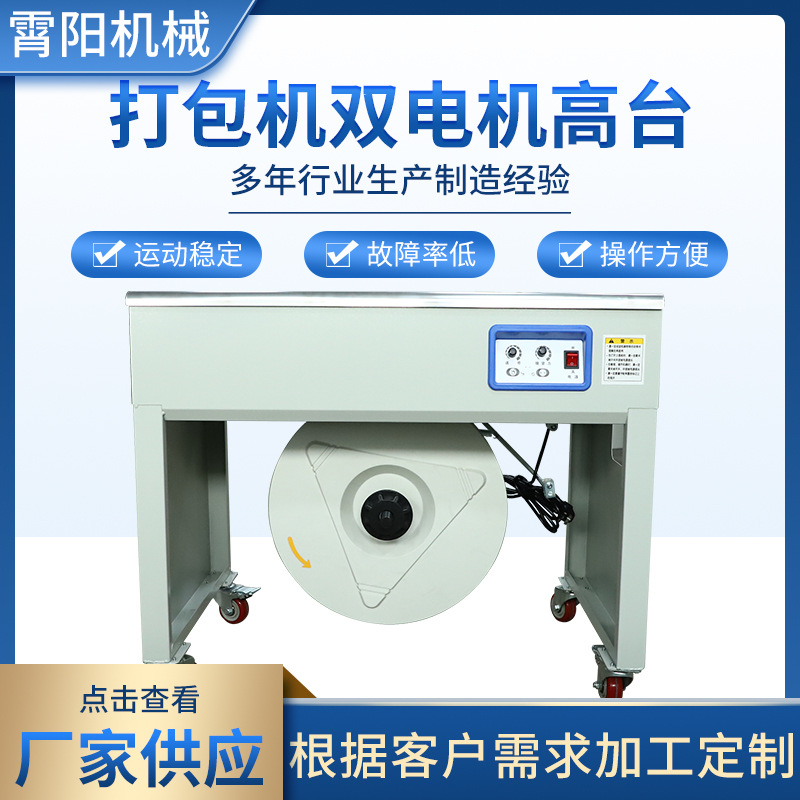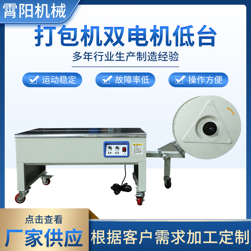 高台双電機半自動包装機メーカーは全熱溶融ボタンレスppベルト箱梱包機を供給している