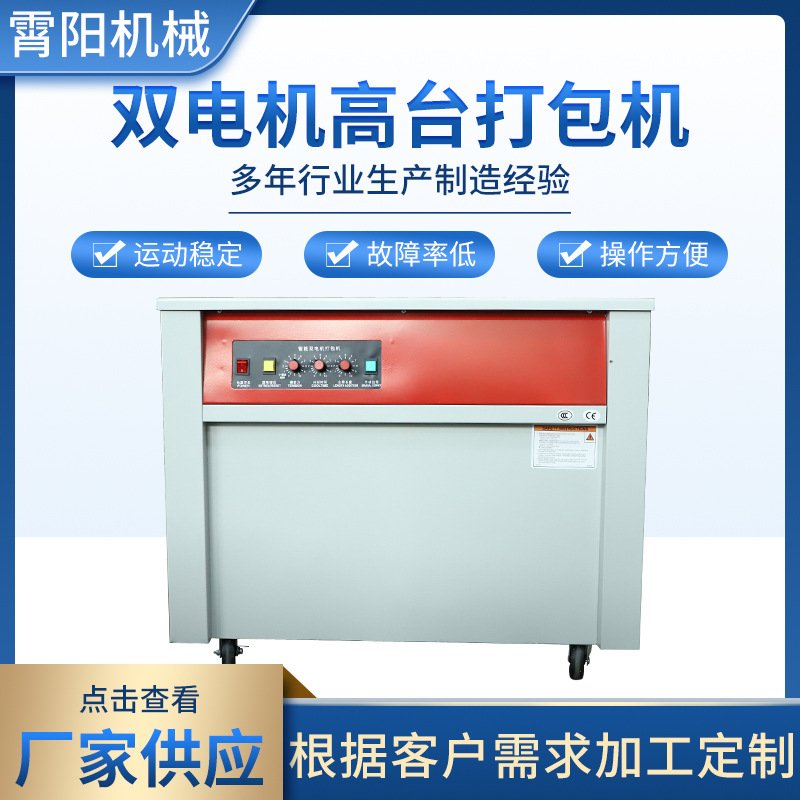 ダブルモーター高低台梱包機メーカーはホットメルトプラスチックの箱梱包機ppベルト段ボール梱包機を供給している