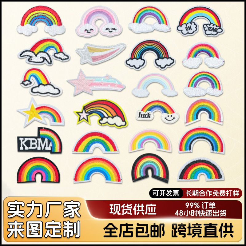工場直販 漫画風虹刺繍布パッチ 流星コンピューター刺繍服パッチ 補修用パッチ材料卸売