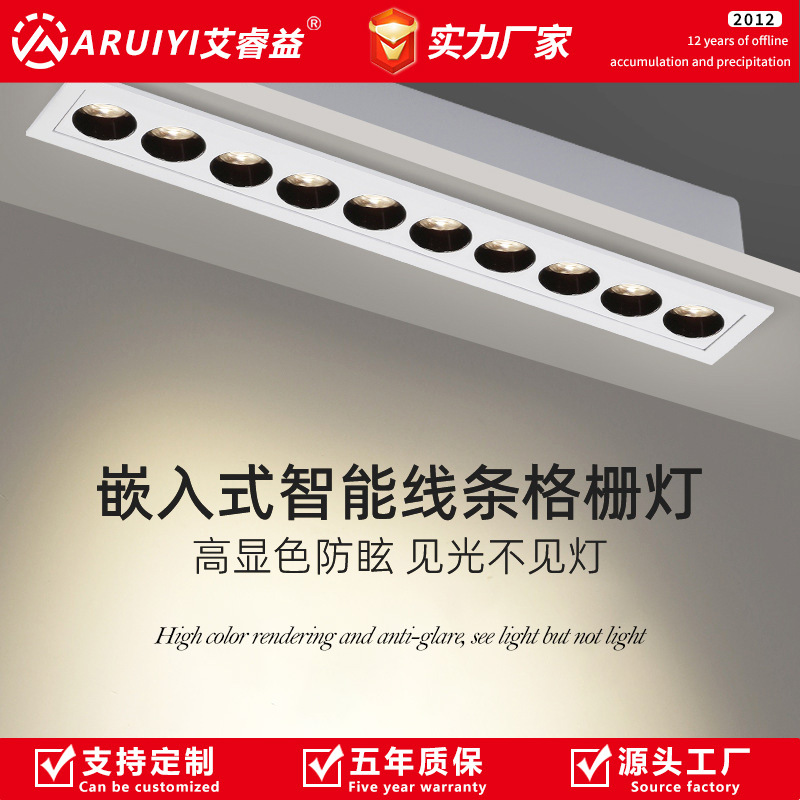 スマート埋め込み式グリルライト家装リビングルーム洗壁ストリップライトLEDディープカップアンチグレア長バー調光スポットライト
