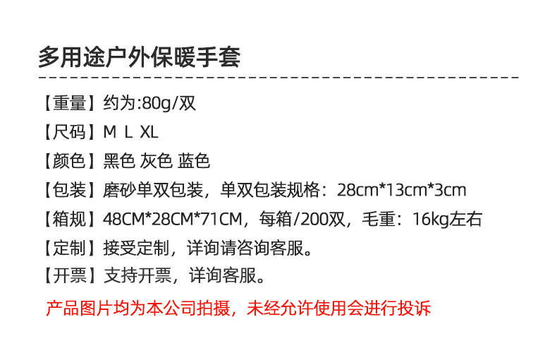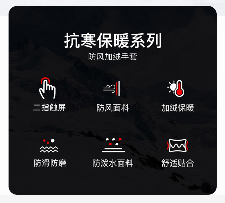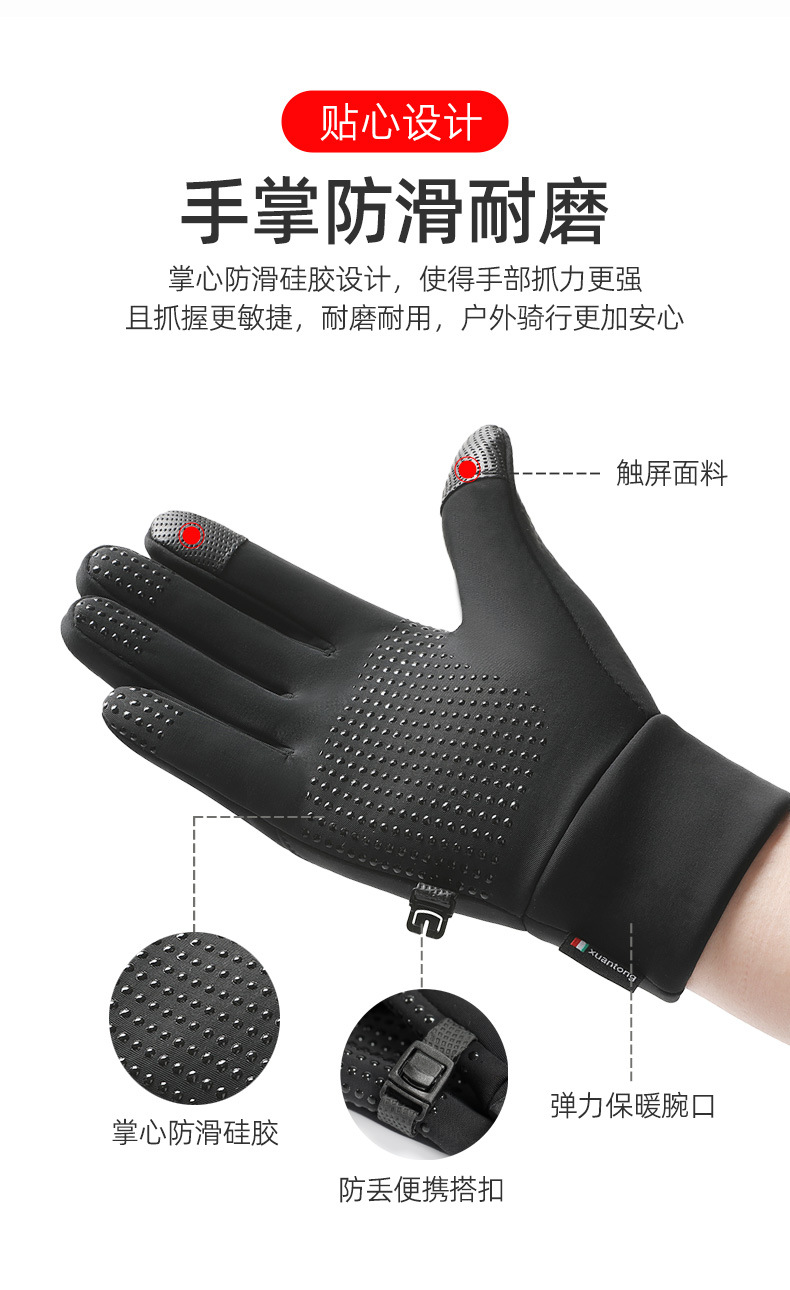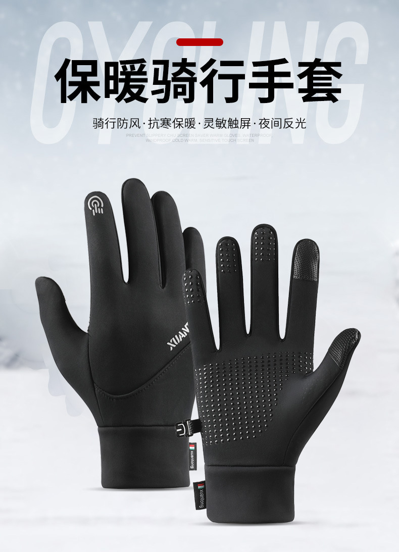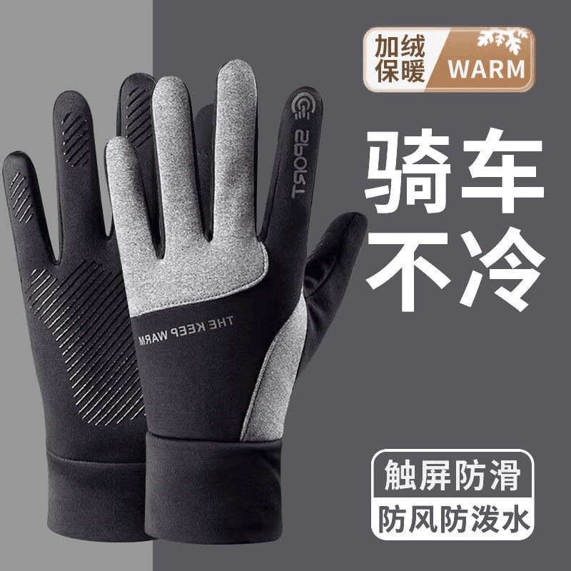 冬季保暖手套男户外运动外卖加绒加厚防风防寒耐磨触屏骑行手套