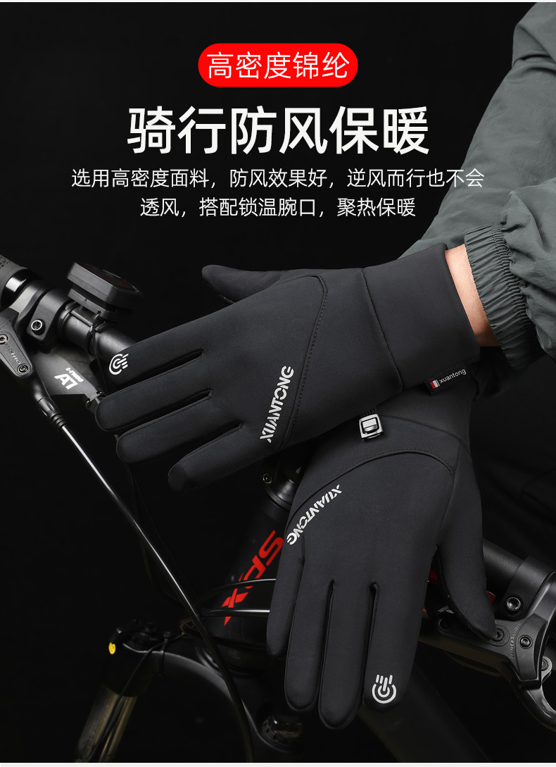 冬季骑行手套男女防风防寒防滑触屏防泼水加绒加厚电动车保暖手套