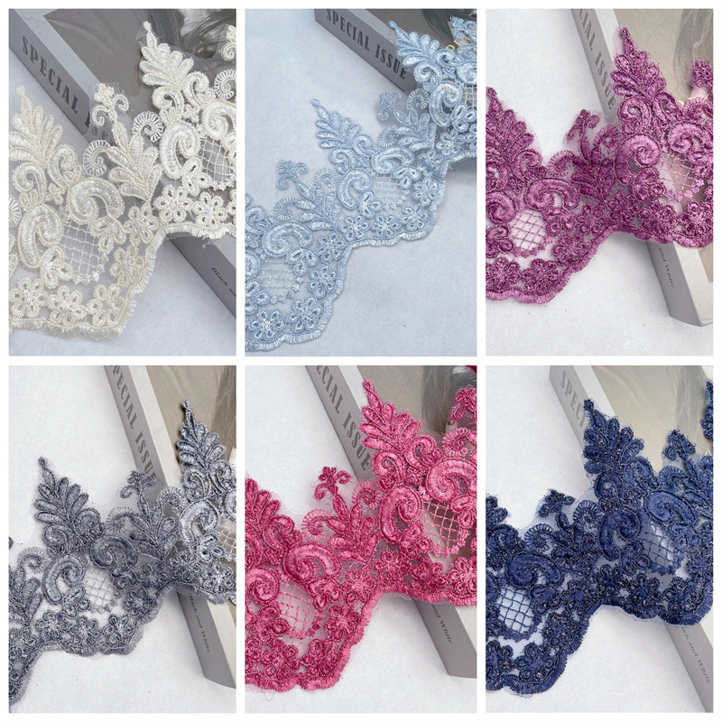 水色の美しい金線刺繍車骨レースドレス家紡織車骨レースDIY装飾補助材料