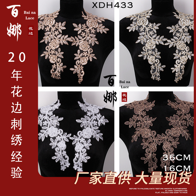 百娜15cm車骨刺繍花柄レースアクセサリー、ウェディングドレス装飾用、メーカー直送、在庫あり、スパンコールレースアクセサリー