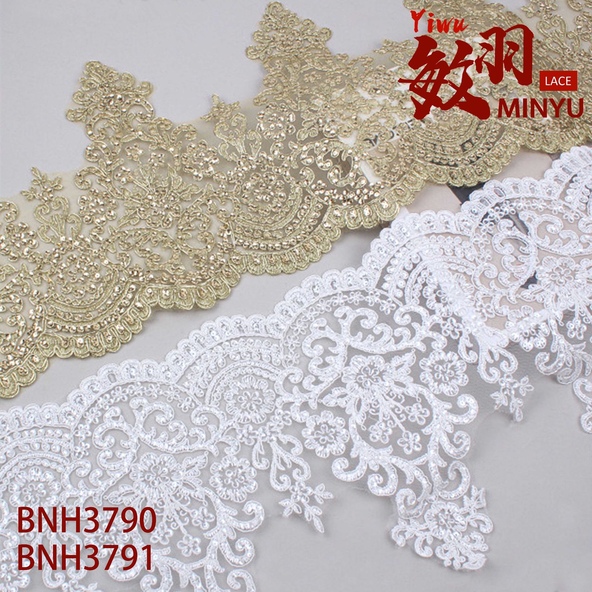 Minyu スポットホワイトゴールドスパンコールカーボーンレース 3d 衣類スカート diy 刺繍装飾カーボーンレースベルト