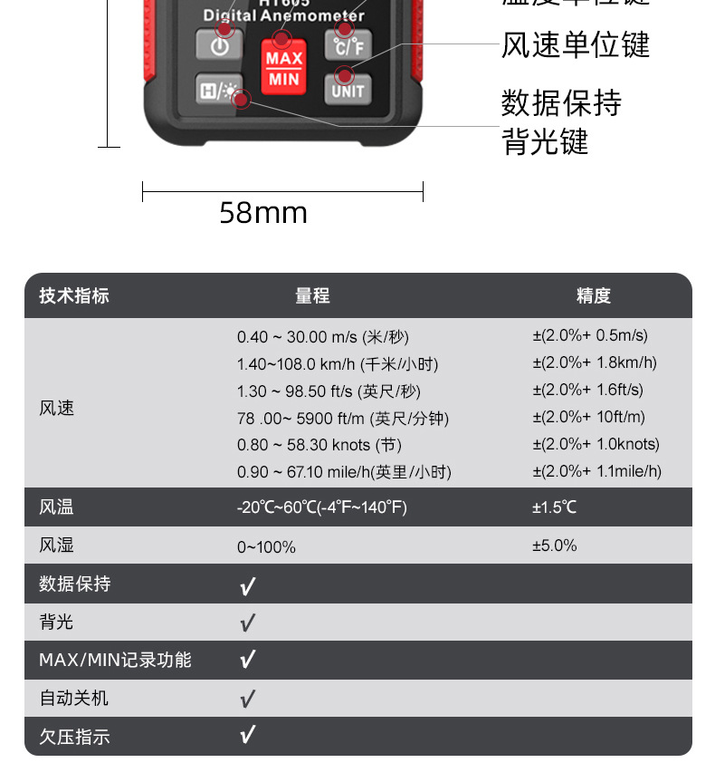 華博ht605手持ち式デジタル風速計高精度風計インペラ式風速計風量測定器