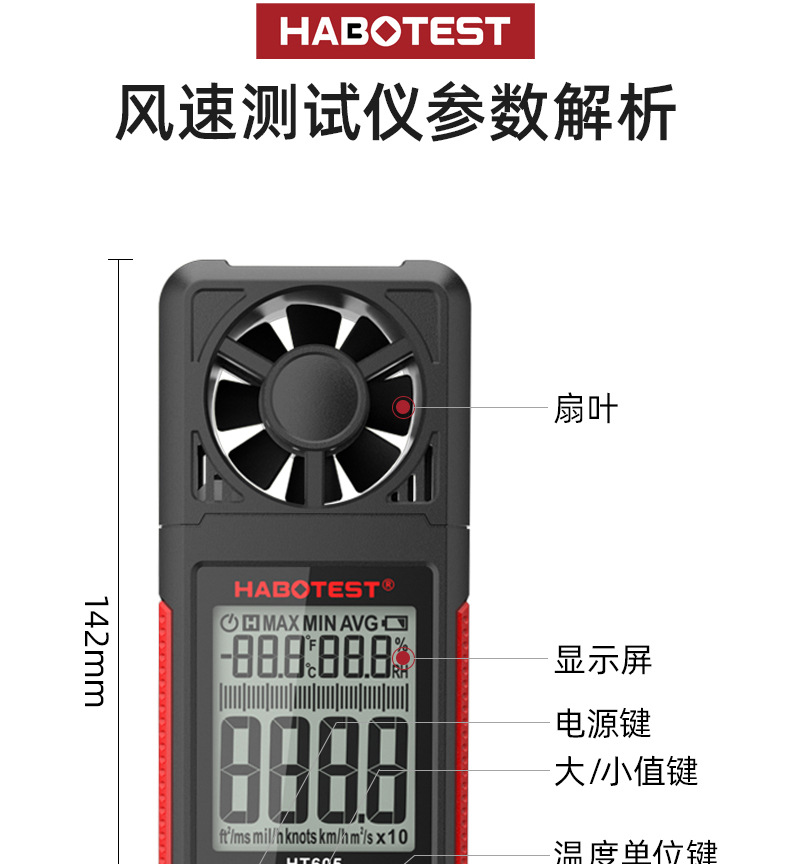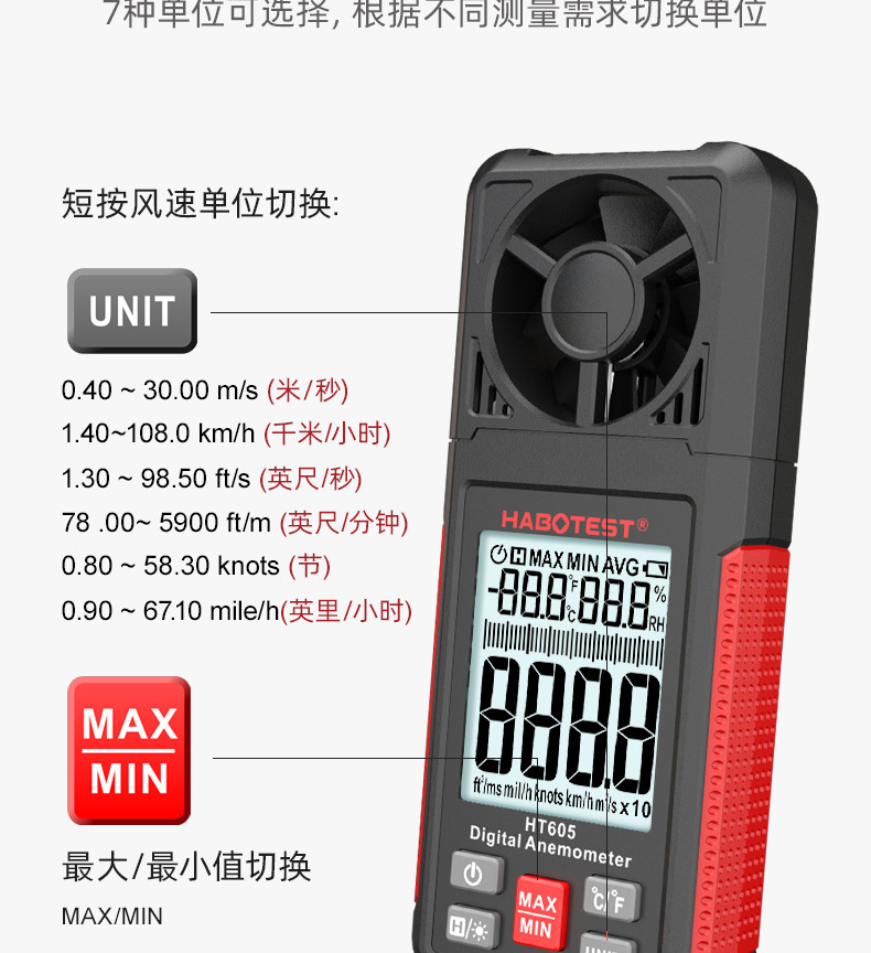 HABOTEST HT605/HT605S ポータブル風速計高精度サーマル風量計