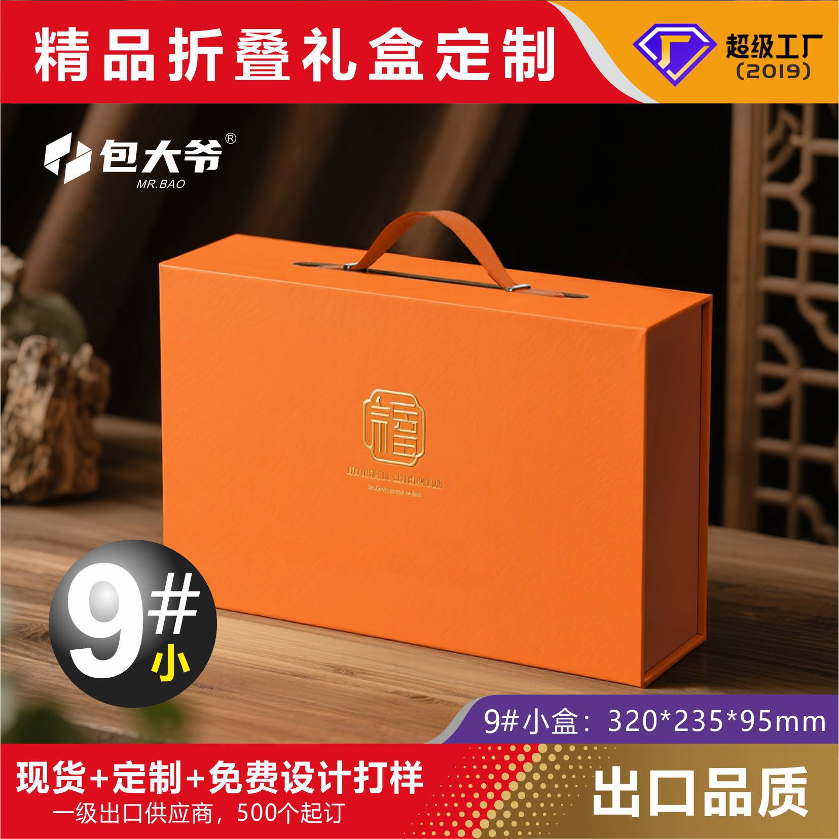 高档新年礼盒空盒手提式翻盖折叠礼品盒橙色伴手礼商务红酒包装盒